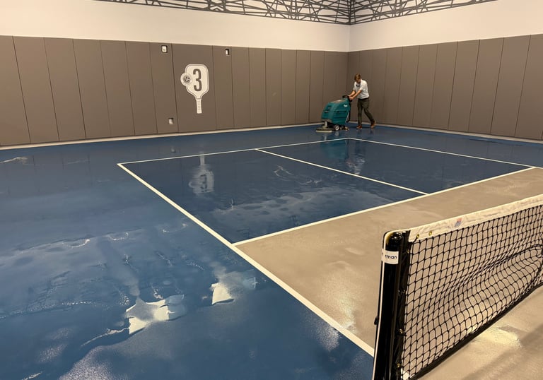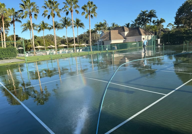 Expert pickleball court cleaning in Florida with gentle techniques that preserve your court's integrity.