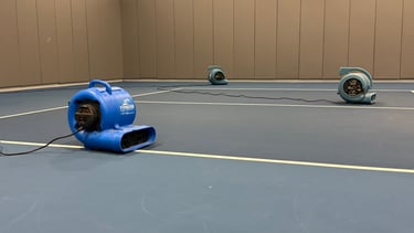 Step 4: Set up at Least 2 large air movers blowing across the court. As the court dries, move the fans forward towards the center keeping them pointed in the same direction. Once completely dry, the job is done!